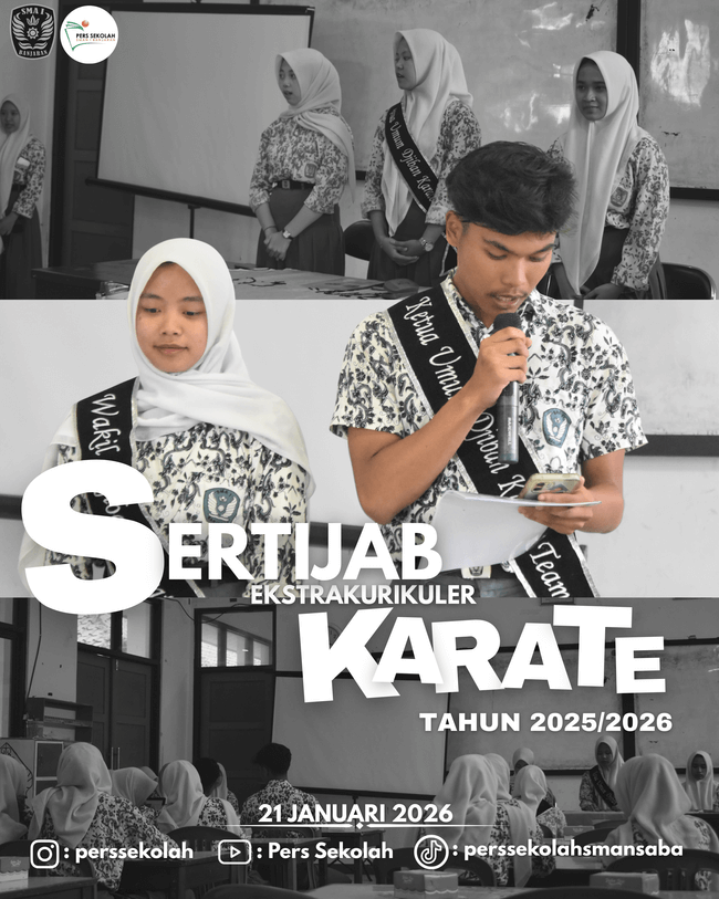 SERAH TERIMA JABATAN KARATE SMAN 1 BANJARAN (21/01/2026) — Pada Rabu, 21 Januari 2026, Ekstrakurikuler Karate SMAN 1 Banjaran melaksanakan kegiatan Serah Terima Jabatan. Kegiatan ini dilaksanakan di SMAN 1 Banjaran, tepatnya di Laboratorium Kimia, dan berlangsung pada pukul 15.35—16.30 WIB. Kegiatan rutin tahunan ini bertujuan untuk menyerahkan jabatan dari Ketua Umum lama periode 2024/2025 […]