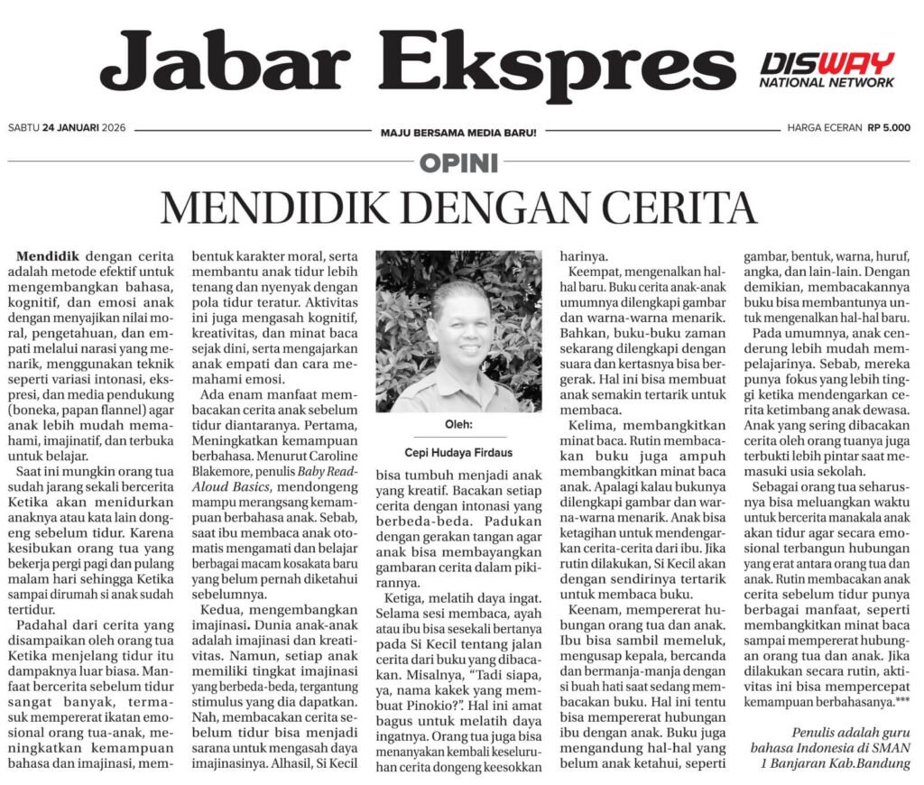 Mendidik dengan Cerita Refleksi singkat yang dikemukakan Bapak Cepi Hudaya Firdaus